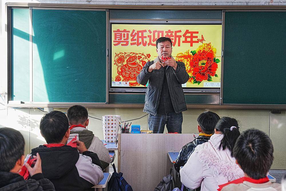 12月25日,非物质文化遗产代表性传承人走进沙河驿镇北铺完全小学教学生们剪纸。张泽慧摄为让学生近距离感受中华优秀传统文化魅力,河北省迁安市在中小学集中开展了“剪纸迎新年 非遗润童心”主题实践活动。通过作品展示、技艺讲解、动手实践等形式,在指尖创作中厚植文化自信,为新年增添别样的文化韵味。