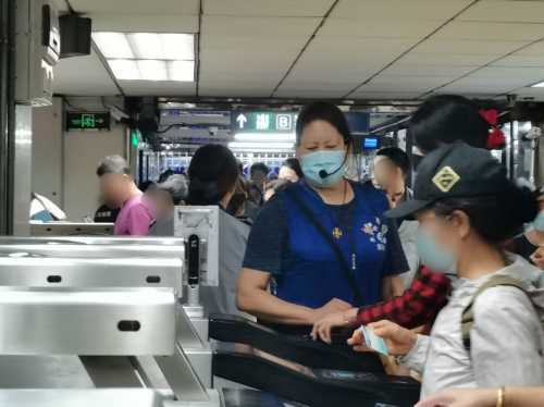 五棵松华熙场馆演唱会散场后,大量观众集中涌入五棵松地铁站。因车站站厅狭窄,为避免闸机拥堵,每次散场后志愿者分队长朱雪梅都带领团队坚守进站闸机口,每10秒便重复一次 “交通卡放感应区,‘滴’声后通行”“大件行李走宽通道”等提示语。遇到乘客刷闸失败,她快速排查原因、协助处置,需车站介入的及时引导至售补票室或呼叫站务员。即便长时间喊话导致嗓音沙哑,朱雪梅仍坚守岗位,与9名团队成员全程值守,直至最后一批观众顺利乘车。