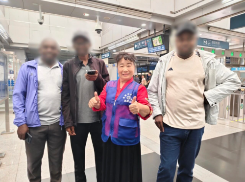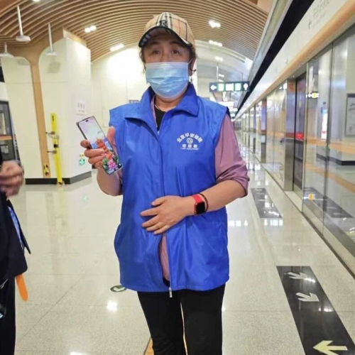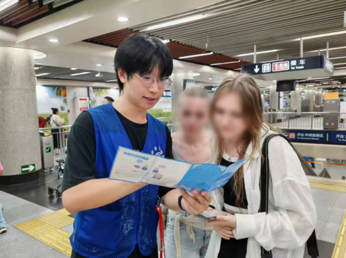 北京地铁传媒大学站外籍客流较多,志愿者姚孝琼精准对接外籍乘客需求,提前准备专业翻译机。志愿服务中,她发现几名外籍游客在自助机具前手足无措——这是他们首次来华,计划前往天安门,却不了解节假日区域封站安排。姚孝琼立刻上前,以简单英语搭配翻译机全程协助,顺利帮游客完成购票、进站流程。临别时,外籍游客主动邀请合影,用微笑定格这份跨越语言的善意。